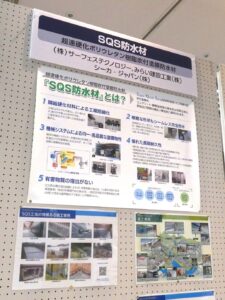 こちらの展示スペースでは展示の他にも、超速硬化材料であるSQS防水材の実演を行うなどいたしまして、ご来場された皆様にご興味・関心をお寄せいただきました。